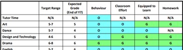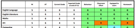 In Year 10 and 11, parents can compare current and expected grades to a NI (national indicator grade), which is based on national statistical data of the grade pupils most often attain at the end of KS4 based on SATs or CATs, and we also provide an AT (aspirational target) to show what they could achieve with the right application of learning attitudes.